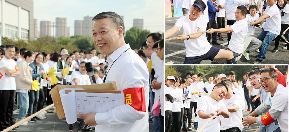 助威、加油声,如雷贯耳振奋人心,参赛队员们紧握长绳、团结一心,卯足劲拼命往后拉。9支参赛队伍,个个斗志昂扬、咬紧牙关、坚持到底;所有观赛人员,不分中心自发组成啦啦队,高喊加油,呐喊声响彻云霄。