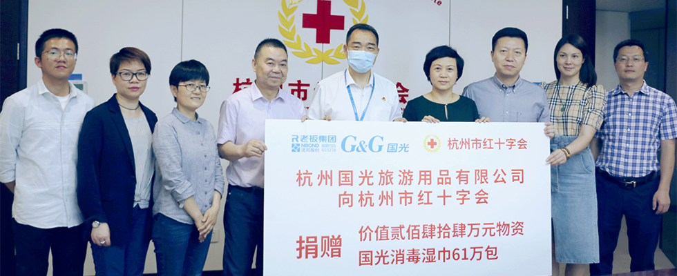 杭州国光捐赠61万包消毒湿巾,助力全市小学复学复课 2020-05-14 浏览量:{{count}} 5月14日,杭州国光向杭州市红十字会/杭州市教育局,捐赠61万包价值244万元的国光消毒湿巾,助力复学复课,尽一个企业应有的社会责任与担当。市红十字会党组书记常务副会长魏丹英对杭州国光捐赠消毒湿有效助力我市复学复课工作的爱心捐赠表示感谢。 杭州国光20多年来,始终执着于开发健康、安全的湿巾产品,打造世界品质,致力于守护家庭健康!