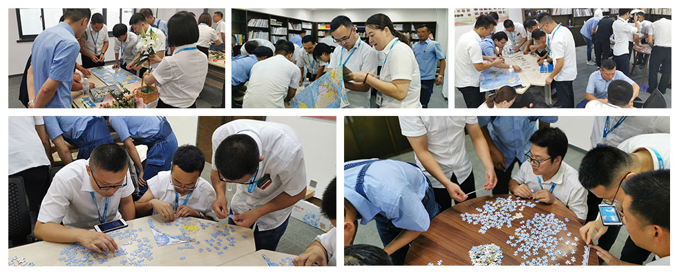 诺邦的销售网络遍布全球,活动策划时也特意选取1000片的世界地图。这绝对是一个烧脑和劳动力兼具的大工程,考验我们的耐心、技巧,想要快、准、狠的拼好这块世界地图夺得第一名,不仅要个人逻辑思维、观察分析和空间视觉想象等能力外,更离不开团队内每个人的齐心协力分工完成。现场他们还不时打趣道:“这得初中地理知识学习的好才有优势啊”、“过了今晚我对世界地图了如指掌了”“地理不是体育老师教的”... ... 站在销售人员角度,这不仅是不断拼出地图的过程,更是我们要不断拓展全球市场的决心,为公司再发展贡献力量。