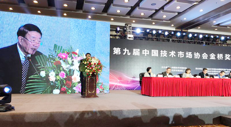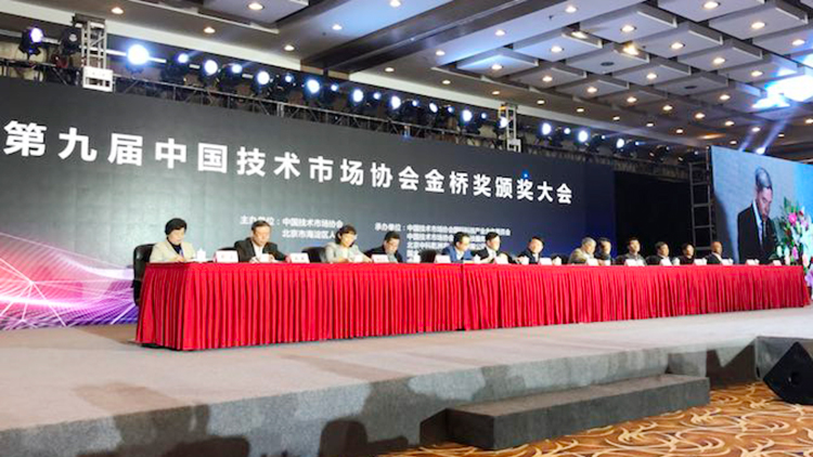 2018年10月31日,第九届中国技术市场协会金桥奖颁奖盛典系列活动在北京市海淀区稻香湖景酒店举行。金桥奖表彰奖励活动是促进我国科技成果转化,加强技术市场建设的重要举措。该奖项由国家科学技术奖励工作办公室批准设立,是全国技术市场领域权威奖项。