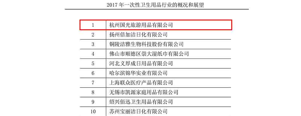 近日,据中国造纸协会生活用纸专业委员会统计,杭州国光旅游用品有限公司在2017年取得湿巾出口量行业第一,销售额行业第二的优异成绩。作为湿巾行业的领导者,杭州国光成立22年来一直专业并专注于湿巾制造,凭借优质的产品质量获得国内外客户的一致认可,国光湿巾在2015-2017连续三年保持行业出口量第一,国内行业排名第二。