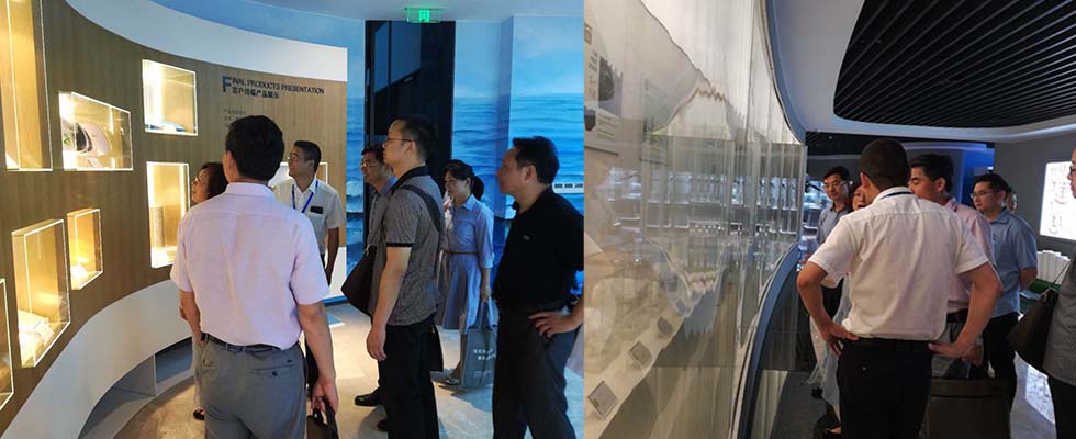 专家组一行人先后参观了诺邦具有全球领先水平的湿法水刺特色生产线--8号线、“上善若水——全球非织造材料发展主题馆”,了解基本情况的同时,也对诺邦的绿色生产有了更清晰的认识。