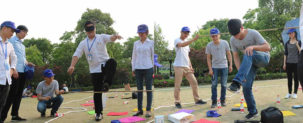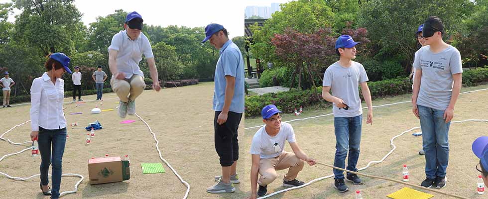 蒙上眼睛根据搭档的指挥走过障碍地,准确避开障碍物顺利到达终点。搭档的默契配合和相互信任,在这个游戏中发挥的淋漓尽致。