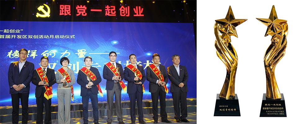 为表彰开发区里涌现出来的优秀企业及团队个人,用榜样的力量鼓励更多的企业及个人为双创工作做出更多贡献,开发区共设立了“双创科研榜样”、“双创专利榜样”、“双创团队榜样”、“双创服务榜样”、“双创人才榜样”5项表彰项。诺邦股份在2017年中企业发明专利授权量在开发区名列第一,荣获“双创专利榜样”。