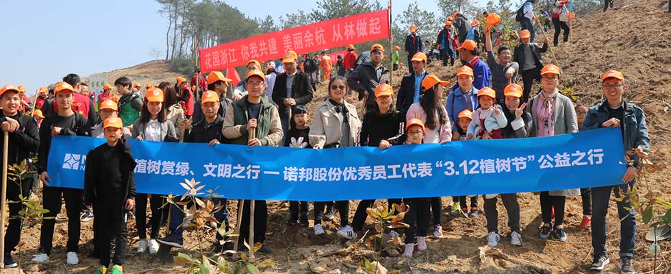 诺邦牢记“让源于自然的每一根纤维回归天更蓝水更清的世界”的企业使命,并持续为做一个环保型企业而不断努力和付出实际行动。今天我们植树造林,使我们进一步增强了保护环境的责任意识,这是构建人与自然和谐,推进生态文明的重要举措。未来,诺邦将会积极参与公益事业,传播爱心,以已所能及之力,从我做起,让世界更美好。