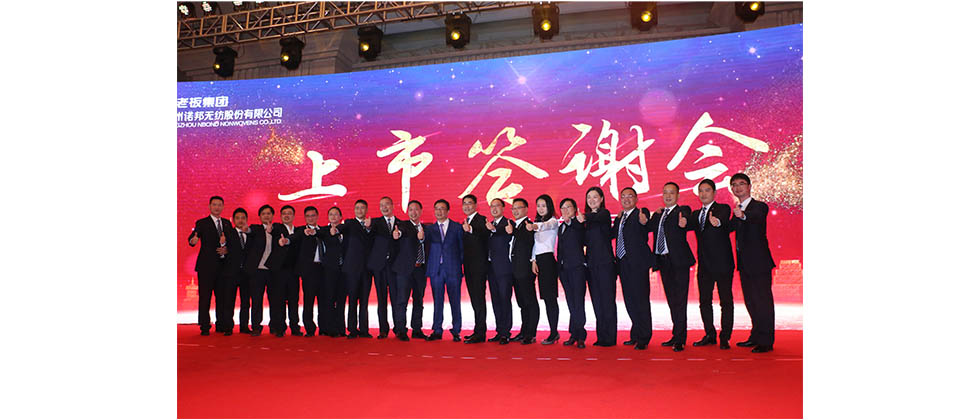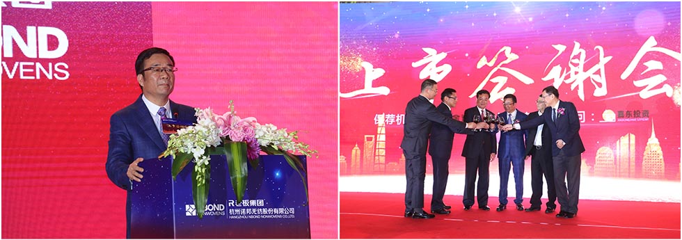 2月21日晚,诺邦在上海浦东香格里拉酒店盛事堂举办上市答谢会。亲手培育了两家上市企业的董事长任建华在诺邦上市之际答谢会上感慨万千:“38年前,24岁的我弃农经商,以2000元启动资金、5个员工起家。企业依靠一点点积累、一点点进步,管理学习学习再学习,技术创新创新再创新,主业坚持坚持再坚持,我们耐得住寂寞,经得起诱惑,造就了今天的老板集团。上市是新的里程碑,希望诺邦向老板电器学习,成为中国水刺非织造细分行业的老大,而且是产品研发、技术创新、规模效益的全方位老大,以持续稳定的优异业绩回报投资者、回报社会。”