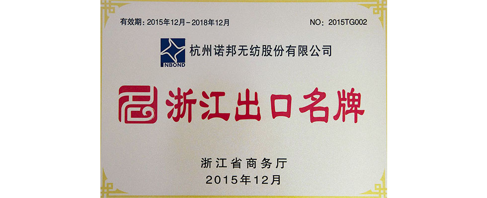 诺邦继获得“余杭出口名牌”、“杭州出口名牌”之后再次斩获“浙江出口名牌”荣誉,这是公司综合实力逐步强大、品牌知名度逐步提升最强有力的证明。获得这一称号,也将更有利于诺邦开拓国外市场,提高公司产品出口率,为打造国际品牌起到强有力的推动作用。
