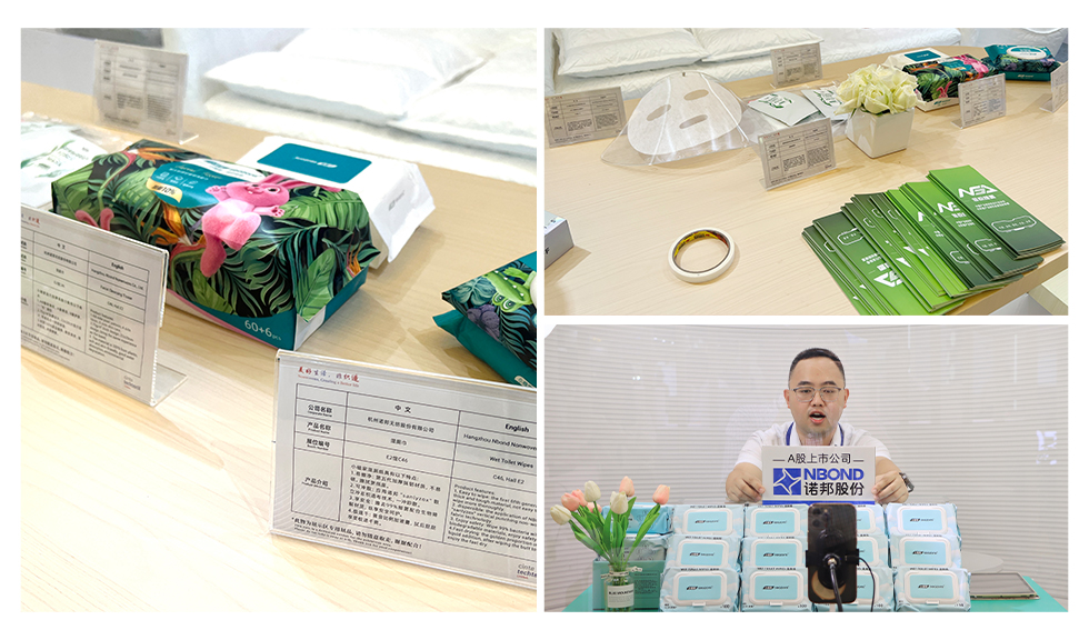 诺邦本次展会围绕“打造全球健康护理绿色产品引领者”的企业目标,向外界展示了“SANLYZOX散立冲、FLAX福耐克、MOSHINBO木芯纺、泡泡洗脸巾材料”等高端差异化水刺非织造材料产品。同时,全新SANLYZOX可冲散压花产品拓展在母婴和女性护理湿厕纸业务的运用;行业首创气泡纹和3D印花擦拭材料在民用擦拭领域的应用,也首次公布。
